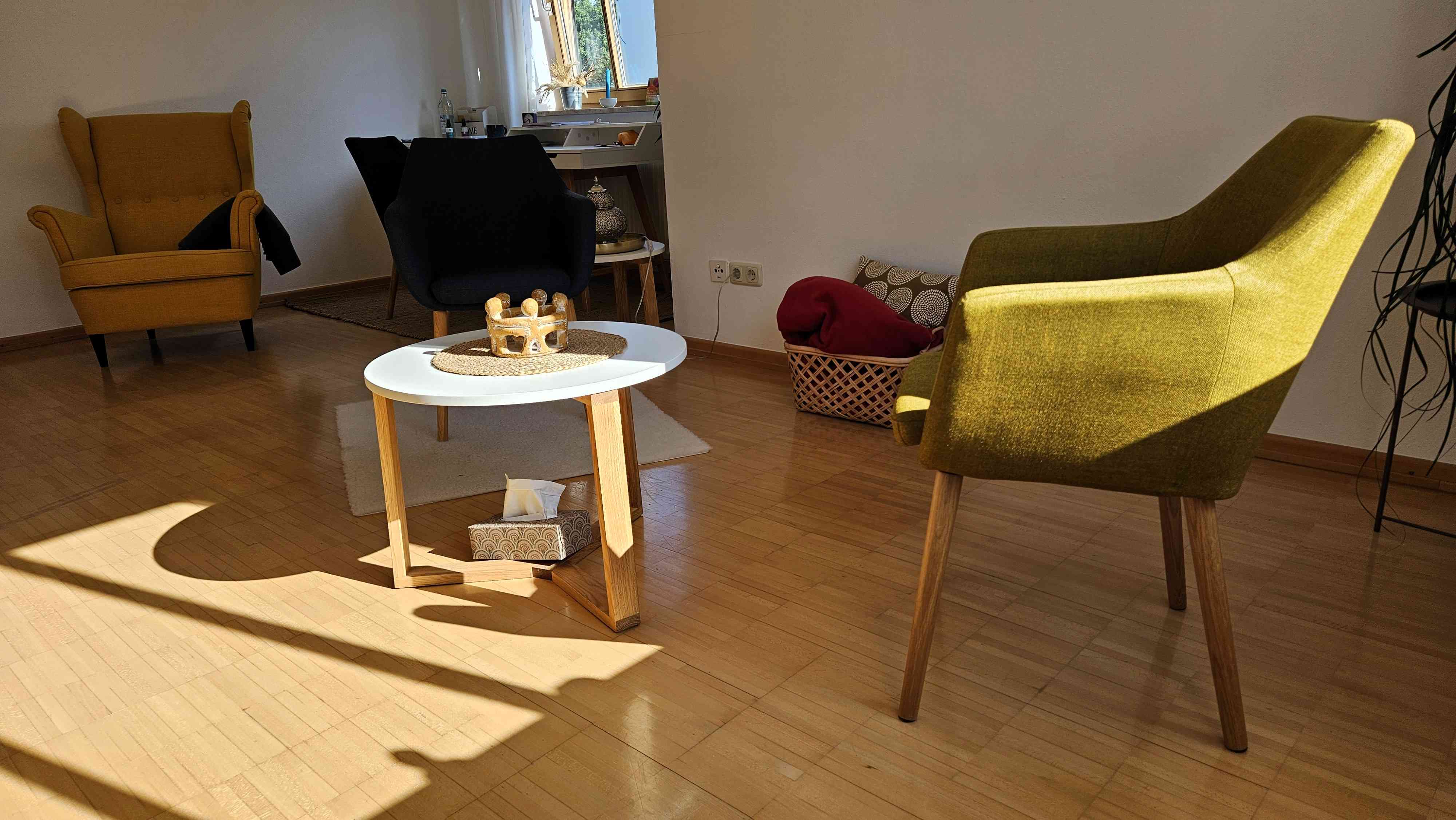 Ich bin Heilpraktikerin für Psychotherapie und arbeite mit Gesprächstherapie nach Rogers, Brainlog®, Techniken aus PITT®, hypnosystemischen Konzepten, Autogenem Training sowie Achtsamkeits- und Atemübungen.