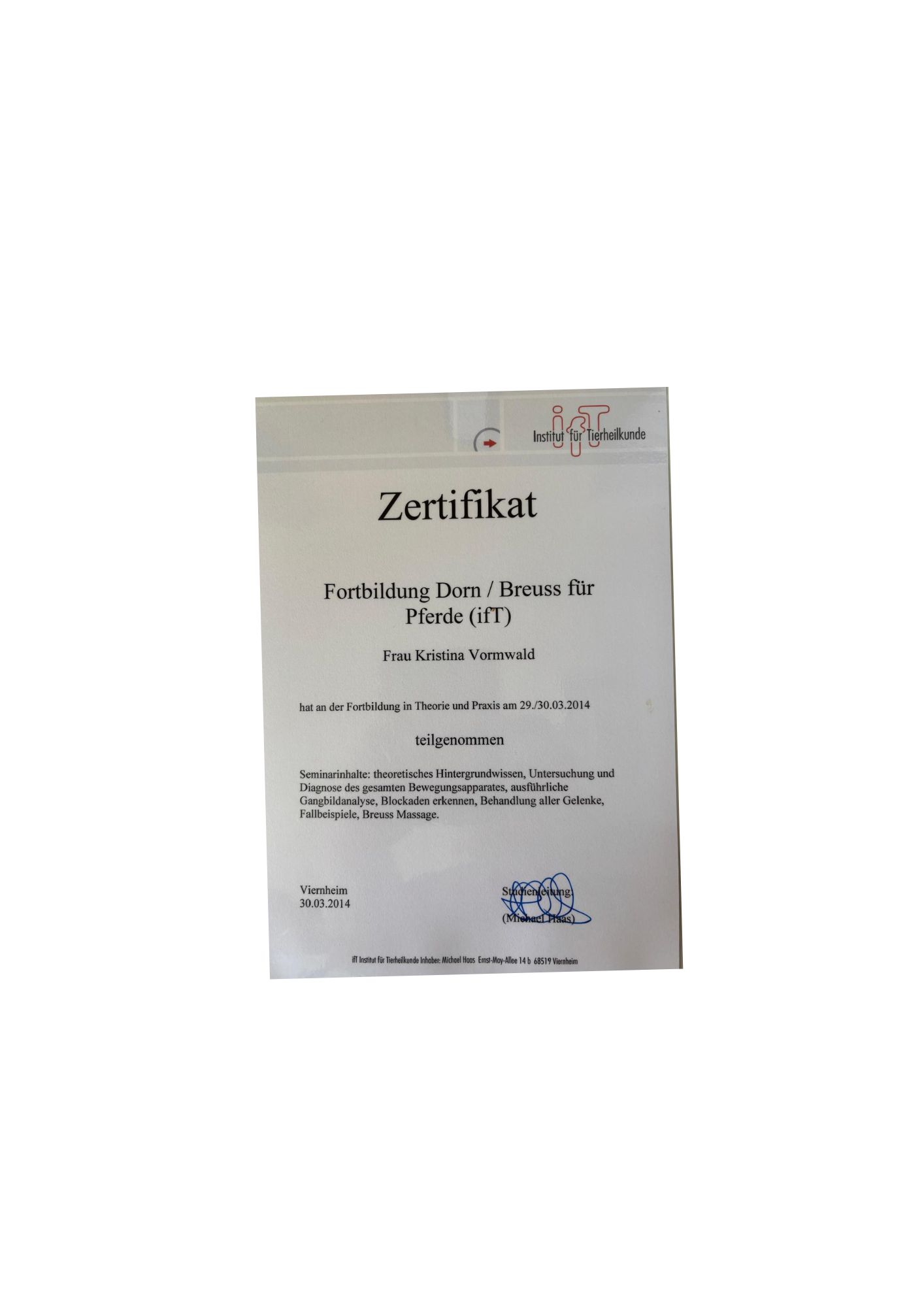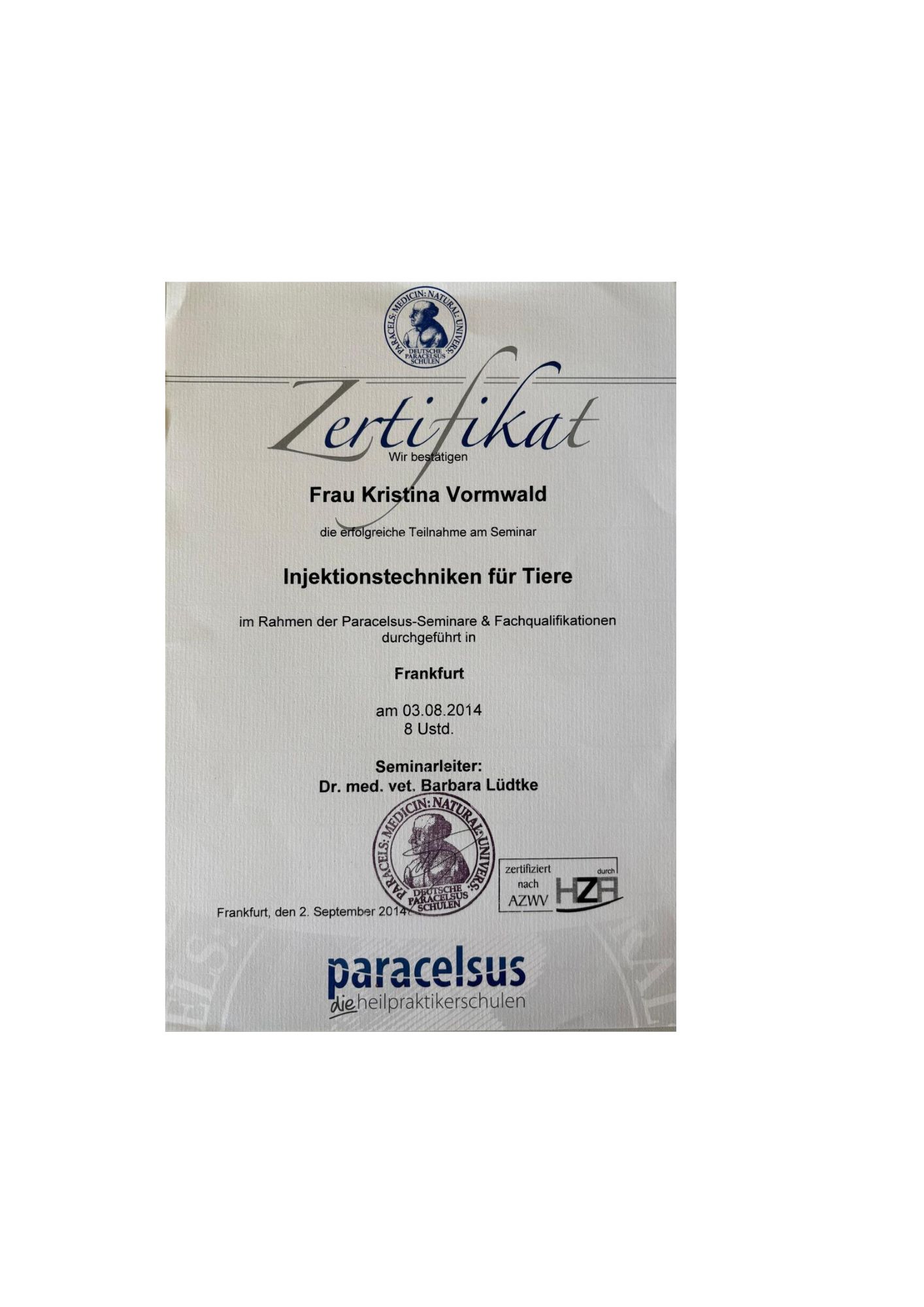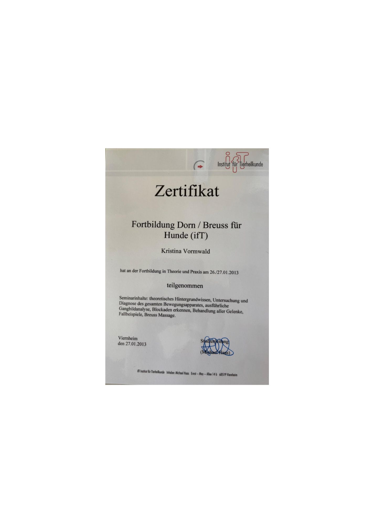 - Ausbildung zur Tierheilpraktikering 2013