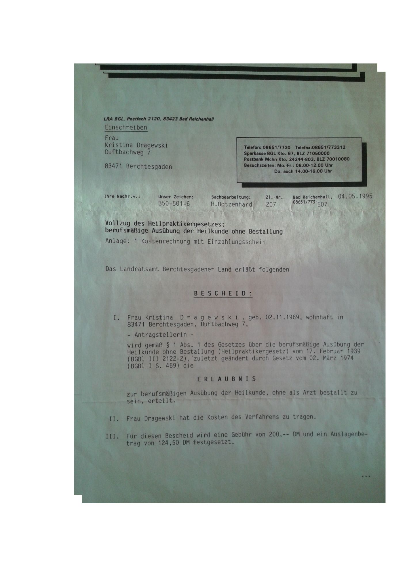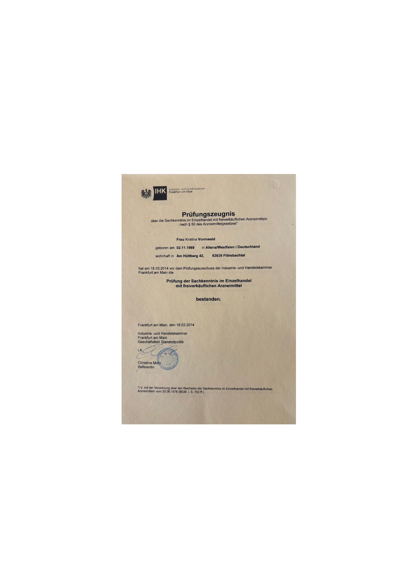 - Ausbildung zur Heilpraktikerin 1995