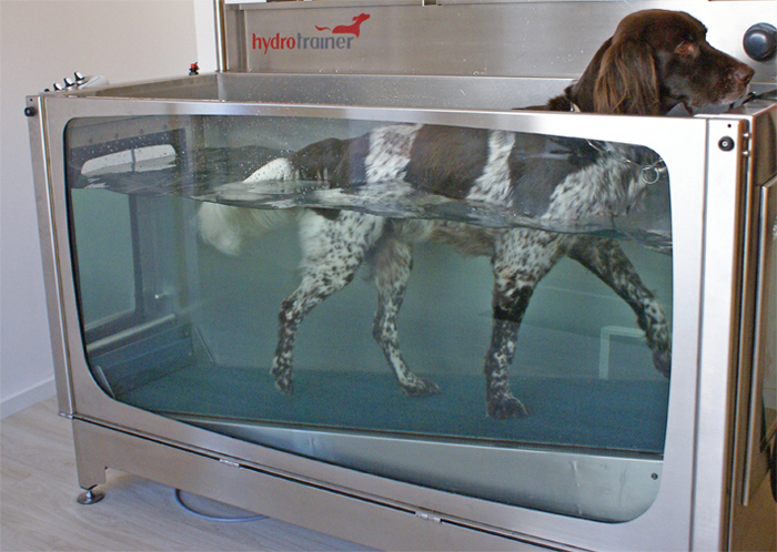 Ein Unterwasserlaufband für Hunde ermöglicht einen gelenkschonenden Muskelaufbau, und wird bei Gelenkbeschwerden und nach Operationen eingesetzt.