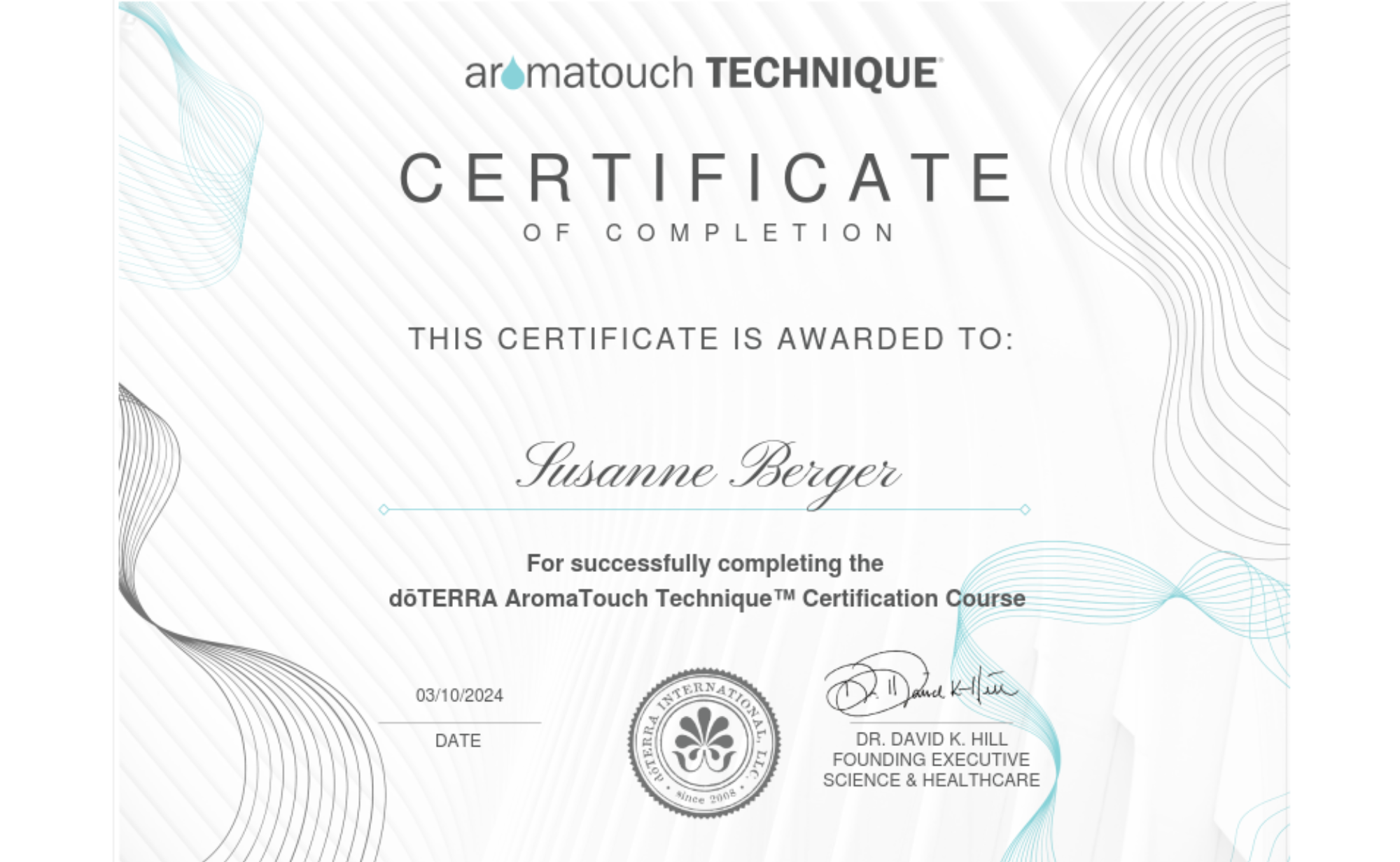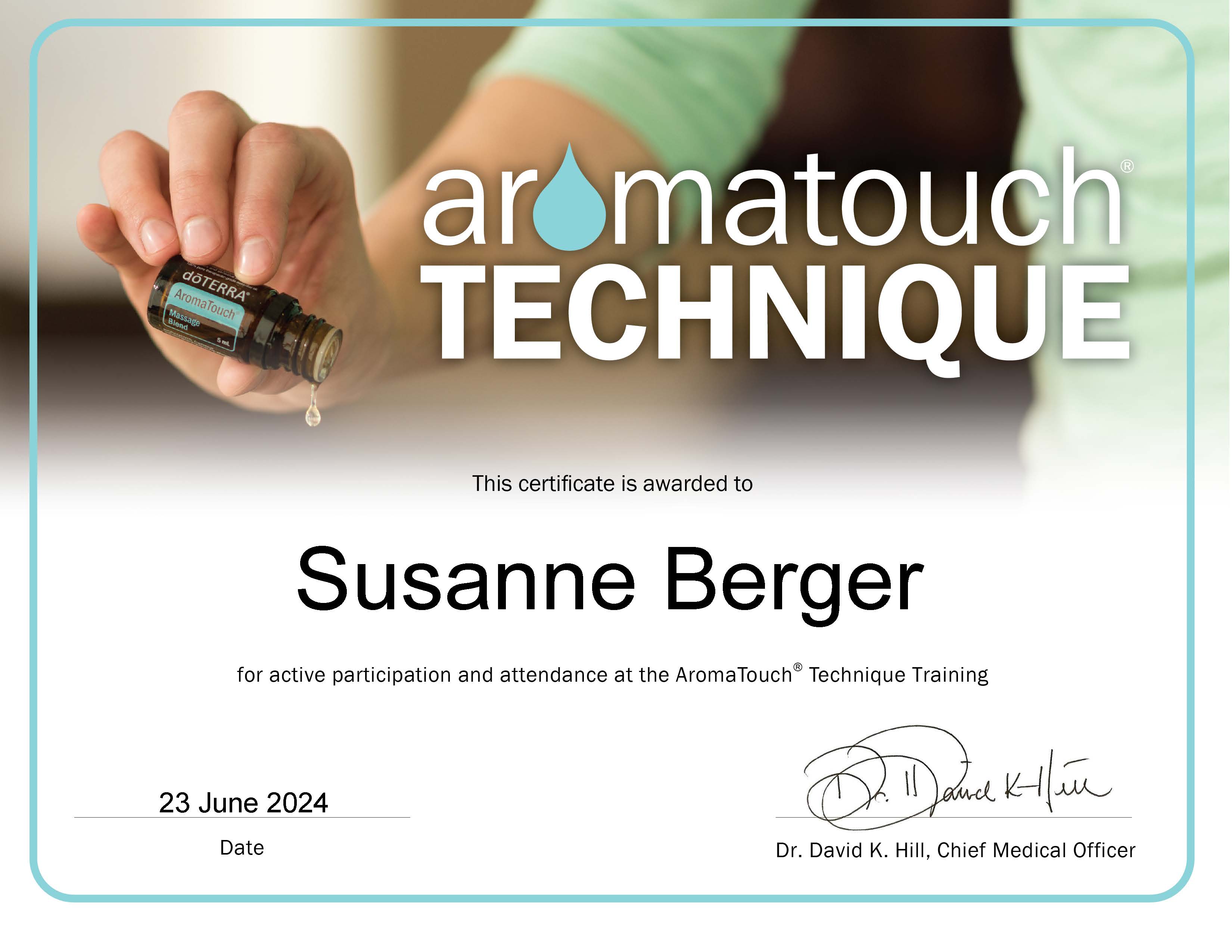 DoTerra Wellnessbotschafter mit dem Kurs "Aromatouch Technique"