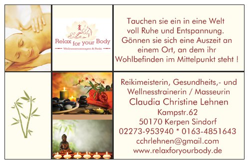 | Web: | http://www.relaxforyourbody.de |